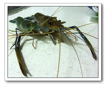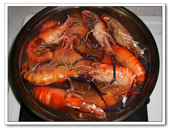 烹調的方式嘛....用川燙的方式,接著泡冰水..... 彈牙的蝦子......救命ㄚ~~~~~